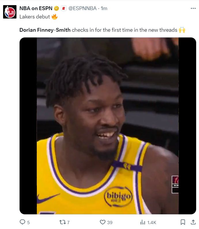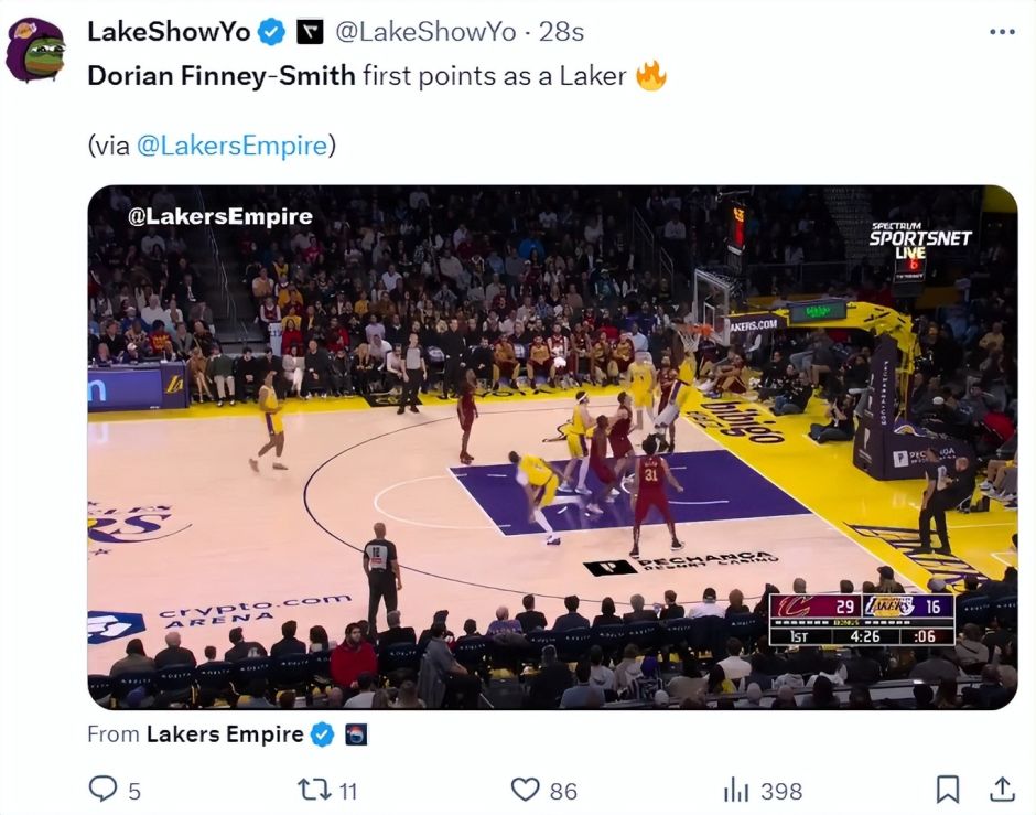 北京时间1月1日,湖人以110-122不敌骑士。此役是湖人新援芬尼-史密斯与谢可-米尔顿的首秀,这两人也是运势不佳,首秀是打联盟第一的克利夫兰骑士队,这两人首秀评分的话,芬尼史密斯C-,米尔顿B+,米尔顿的效率高太多了。