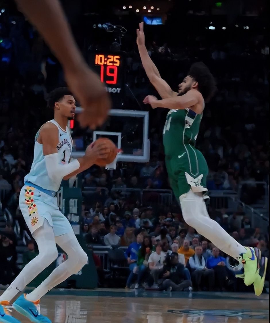 末节文班亚马继续登场,马刺希望在字母哥不在场时缩小分差,凯尔登连拿5分,文班亚马进攻端完全隐身,特伦特三分命中大洛篮下命中,波蒂斯造犯规马刺已经落后23分,还剩2分48秒马刺还落后19分,马刺放弃比赛。文班此役10分是赛季第二低分,此前是10月31日的6分。