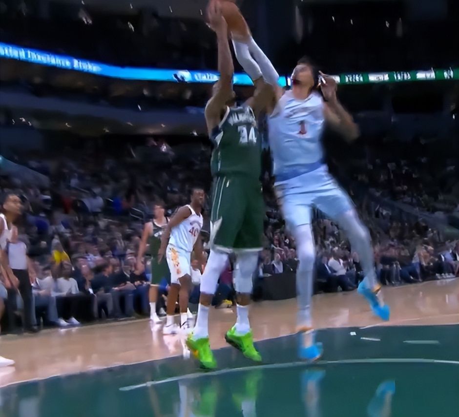 文班亚马作为一个身高2.26米的长人,他的身体协调性是历史级的存在,他在空中遭遇字母哥的封盖,他竟然用他2.44米的臂展完成了一个大拉杆,这一球就足证他的身体天赋异于常人,首节文班亚马5中3+三分3中1拿到7分2篮板1盖帽,不过大洛首节5中3拿到8分1篮板1盖帽,两人是均势。