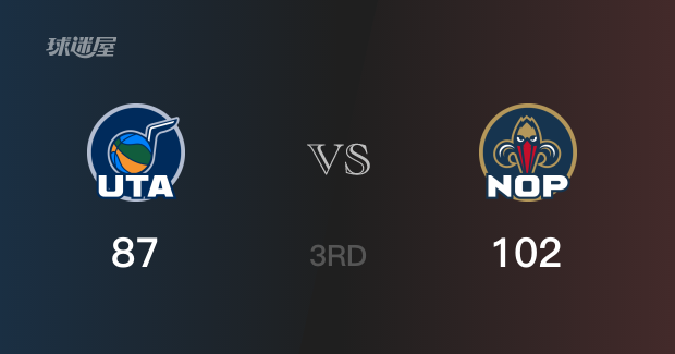 三节结束,鹈鹕以102-87领先爵士15分,末节再战。