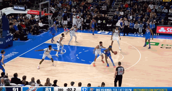 末节,亚历山大中投得分,欧文连得5分,丁威迪中投命中,独行侠领先11分。亚历山大突破得分,杰伦-威廉姆斯三分命中,丁威迪三分也中。威金斯上篮得分,亚历山大中投命中,雷霆只落后两分。格雷姆斯三分命中,克勒贝尔三分命中,丁威迪扣篮,格雷姆斯再中三分,独行侠领先9分。亚历山大连得4分,格雷姆斯两罚一中,华盛顿两罚两中。杰伦-威廉姆斯三分命中,丁威迪进攻犯规,卡鲁索失误,格雷姆斯两罚两中。最终,独行侠客场击败雷霆。