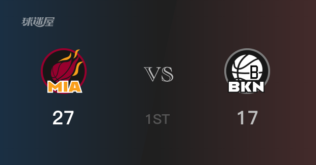 首节比赛,热火在12分钟里,全队投篮20投10中,三分球6投4中,投篮命中率为50%,三分命中率为67%;首节比赛,篮网在12分钟里,全队投篮22投6中,三分球9投1中,投篮命中率为27%,三分命中率为11%。