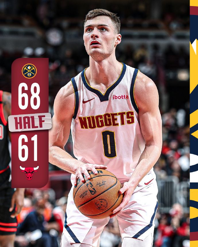 进入次节比赛,掘金连续两节轰下30+得分,他们继续压制公牛保持领先优势。约基奇继续给力表现,他次节4中4单节得到9分2篮板1助攻,引领掘金逐步扩大两位数领先优势。公牛随后继续反扑追分,掘金单节33-29再赢4分,上半场比赛结束掘金68-61领先公牛7分。前两节比赛,约基奇10中10继续保持百分百准星,约基奇21+5+8引领掘金3人得分上双,拉文10分与武切维奇11分。