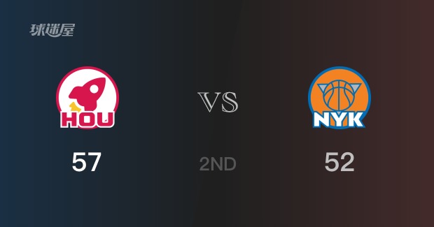 半场结束,火箭以57-52领先尼克斯5分。