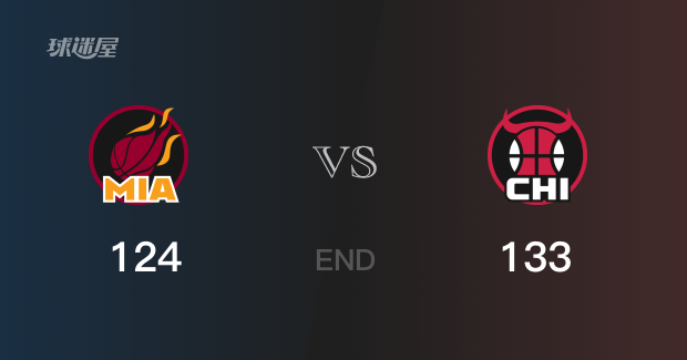 全场比赛,公牛球员吉迪全场砍下24分;热火球员阿德巴约全场砍下23分。全场结束,公牛以133-124战胜热火。