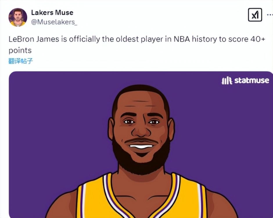 美媒Hoop Central列出了詹姆斯本场比赛的数据,并且赞叹“40岁,难以置信!”
