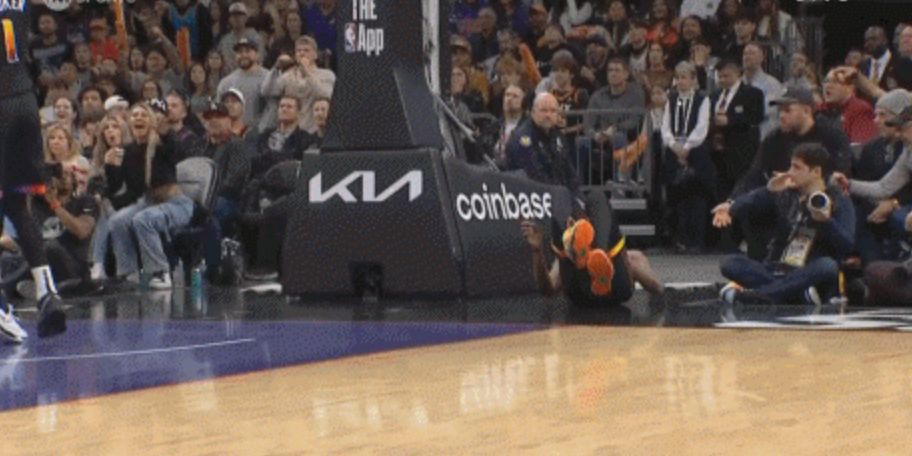 杜兰特一度被顶到腹部摔出底线幸无大碍。