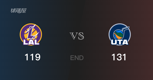 24直播网02月13日讯,NBA常规赛湖人vs爵士,本场比赛由爵士主场迎战湖人,经过一番对决,最终爵士以131-119战胜湖人,马尔卡宁32分,八村塁19分。