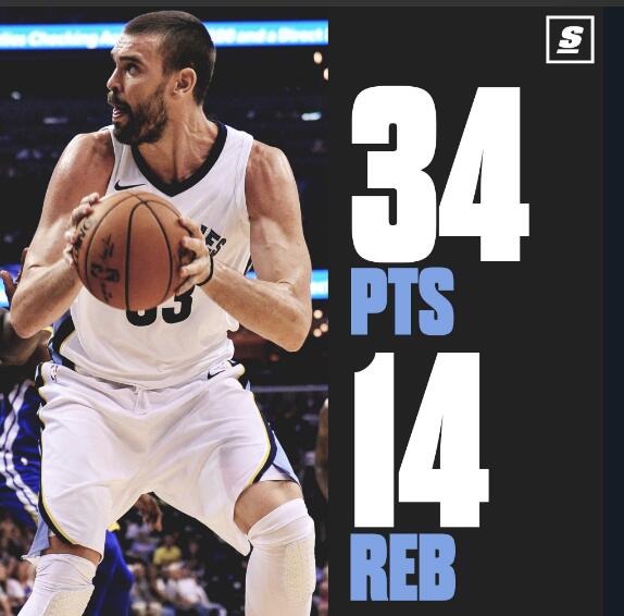 24直播网10月22日讯 灰熊今日在主场以111-101战胜了勇士,灰熊球员马克-加索尔本场比赛发挥出色得到了34分14个篮板,据灰熊公关统计,这是加索尔职业生涯首次得到至少30分14个篮板的数据。