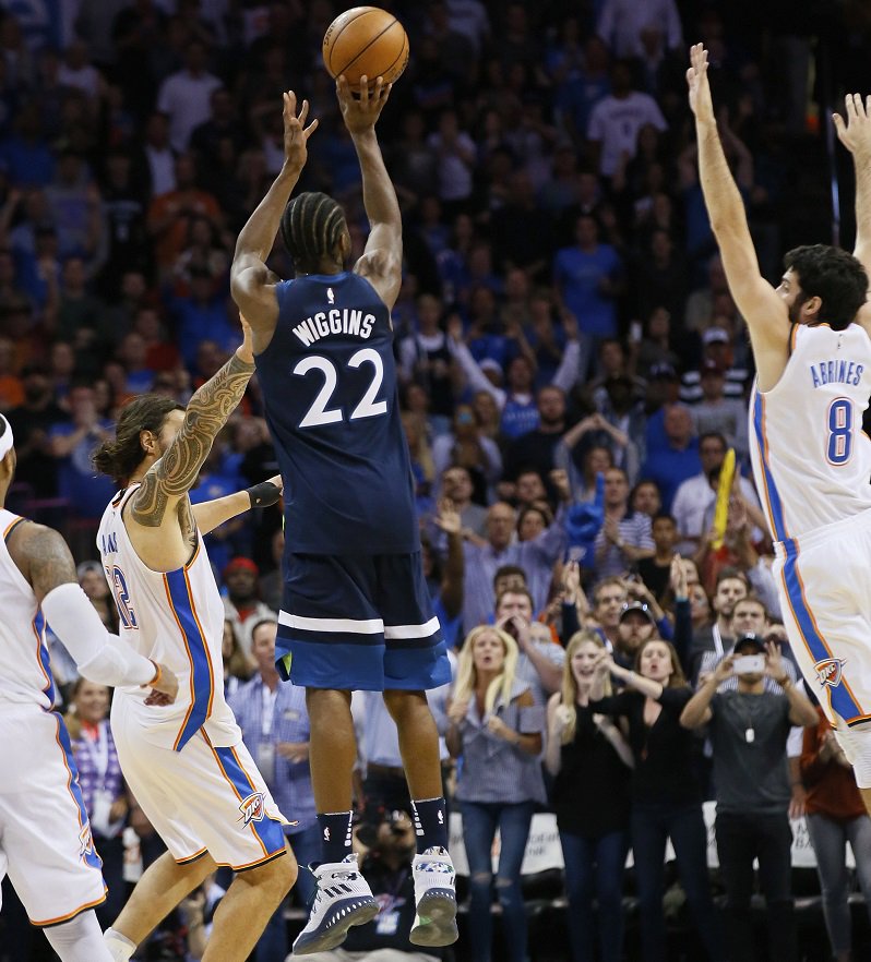 在2016-2017赛季,1月25日森林狼客场112-111战胜太阳的比赛中,威金斯完成了生涯首次压哨绝杀。