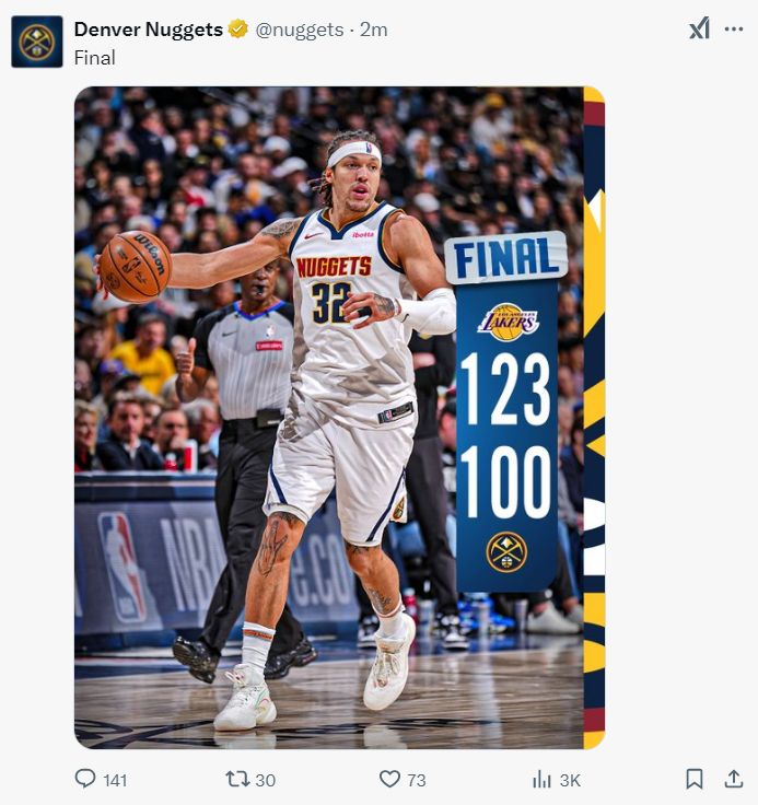 北京时间2月23日,NBA常规赛,掘金以100-123不敌湖人结束9连胜。这场比赛还是掘金结束对湖人的8连胜,也是约基奇本人面对湖人终结5连胜,换言之约基奇156次三双迎来巨大的里程“悲”。