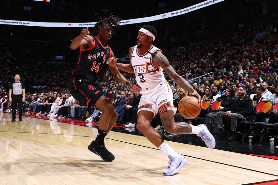 中场休息回来,猛龙一波6-2攻势扩大19分优势,布克与奥尼尔携手打出9-0攻势追分。猛龙连得3分,布克三分命中,罗宾逊两罚全中,太阳三巨头携手打出9-0攻势,追到75-78仅差3分。谢德三分命中,布克两罚全中,猛龙一波7-0攻势扩大11分领先优势。杜兰特两罚一中,阿伦与普拉姆利接连暴扣,太阳单节30-21追回9分,三节结束太阳82-88落后猛龙。前三节比赛,猛龙5人得分上双,但没有球员得分达到15分,太阳4人得分上双,布克23分7助攻与比尔22分,杜兰特13分。