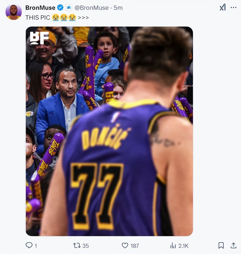 这场比赛独行侠总裁尼科-哈里森来到斯台普斯看球,他赛前跟东契奇毫无互动,而东契奇首节拿到9分7篮板4助攻1抢断1盖帽填满数据栏,东契奇有一瞬间瞄到了场边的哈里森,这一幕嘲讽拉满。