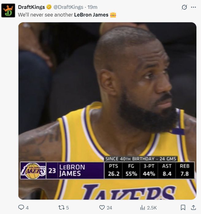 勒布朗的外线三分太准了,整个二月份老詹三分命中率高达46%,首节老詹5中4+三分3中2拿到10分3篮板2助攻1抢断,只丢了一个外线,关键是40岁的勒布朗领防19岁的迪林厄姆,结果造成迪林厄姆24秒违例,首节湖人只让森林狼拿17分防守太恐怖了。