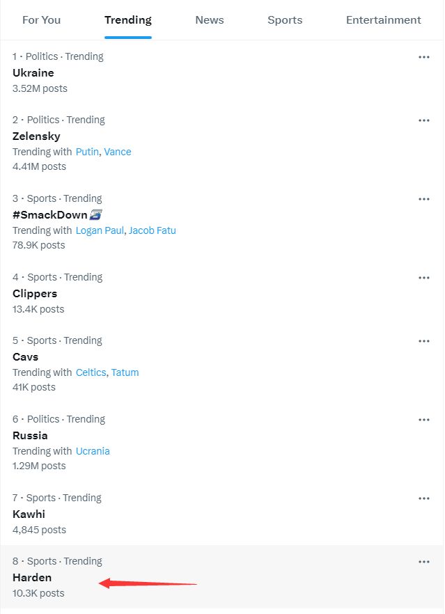 这场比赛伦纳德与哈登都登上了全美热搜,哈登22中5+三分10中1被喷惨。
