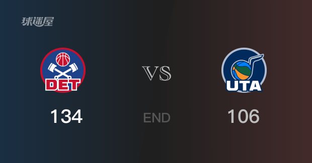 全场比赛,活塞球员康宁汉姆全场砍下29分;爵士球员菲利波夫斯基全场砍下25分。全场结束,活塞以134-106战胜爵士。