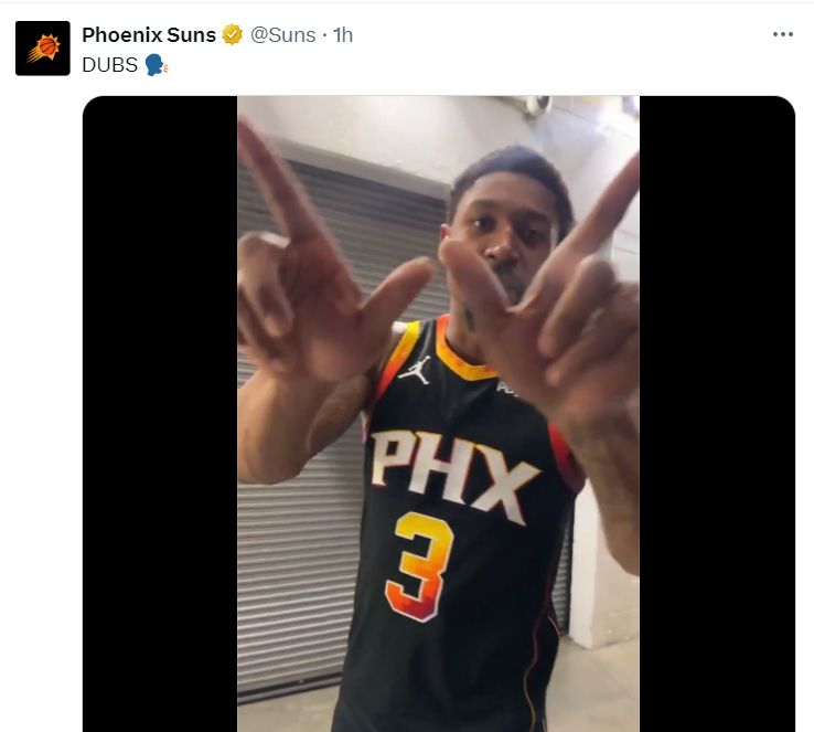 比尔进入球员通道时也朝着镜头比了一个胜利的庆祝动作。