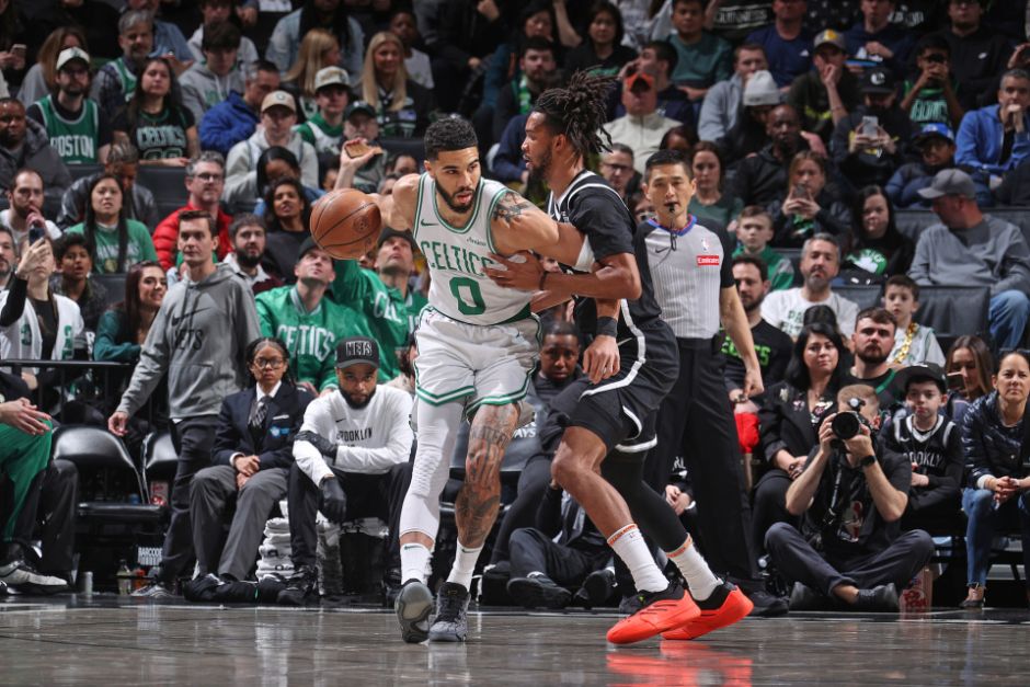 凯尔特人前67场48胜19负,已经提前15场锁定季后赛名额。篮网前66场22胜44负,过去两场连输骑士与公牛遭遇2连败。本赛季前两次交锋,凯尔特人均取胜。本场篮网缺少托马斯、克拉克斯顿、沃特福德、梅尔顿、克洛尼,凯尔特人缺少怀特、霍福德。首节开局凯尔特人8-9落后,凯尔特人一波7-0攻势反超比分,篮网继续反扑追到18-18平。双方之后缠斗至凯尔特人26-27落后,凯尔特人连得4分取得领先,首节结束凯尔特人30-27领先篮网。