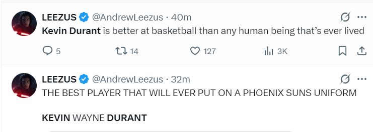 美媒:凯文-杜兰特在篮球方面的造诣超越了有史以来任何一位人类选手;他依旧是身穿菲尼克斯球衣最出色的球员。