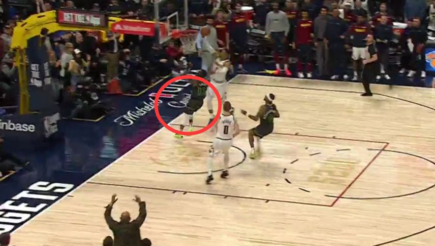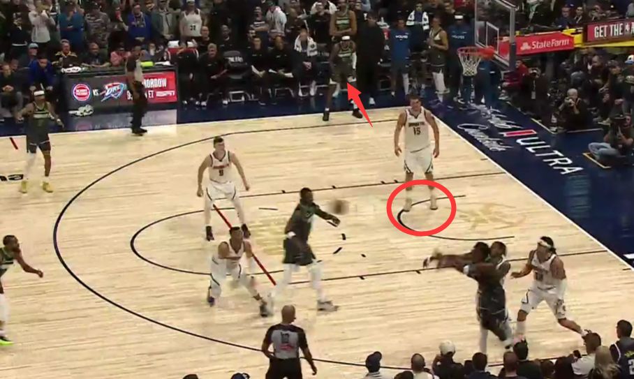 第二次漏判出现在距离第二次加时结束还有34.5秒,约基奇在未积极防守对方球员的情况下在己方禁区停留时间超过3秒,这是一次漏吹的防守三秒违例,掘金获利,森林狼吃亏。