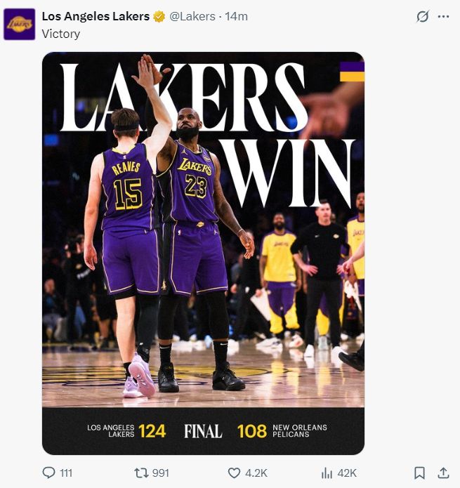 北京时间4月5日,湖人以124-108击败鹈鹕避免连败,湖人本赛季三杀鹈鹕。此役后湖人重返西部第三,最值得高兴的是,东契奇首节7中0后三节14中10,后面三节东契奇拿到了33分,他终于走出了泥沼,湖人也太需要他这样的进攻状态。
