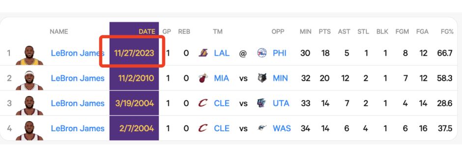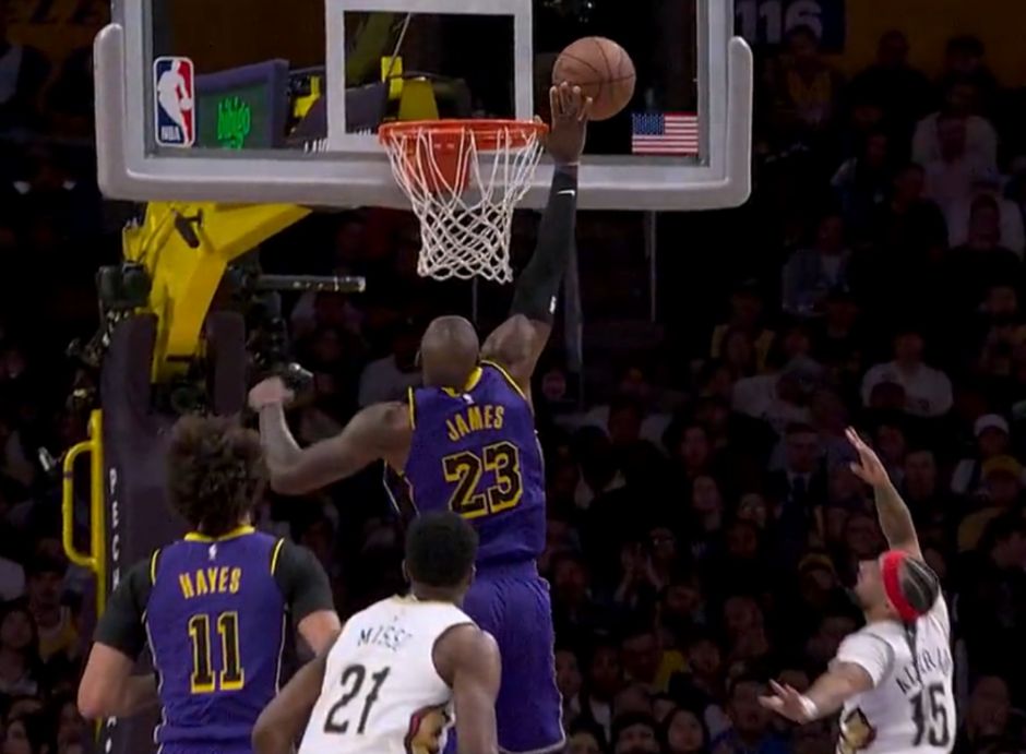 詹姆斯上一次0篮板还要追溯到2023年11月27日,也就是495天首见单场0篮板。