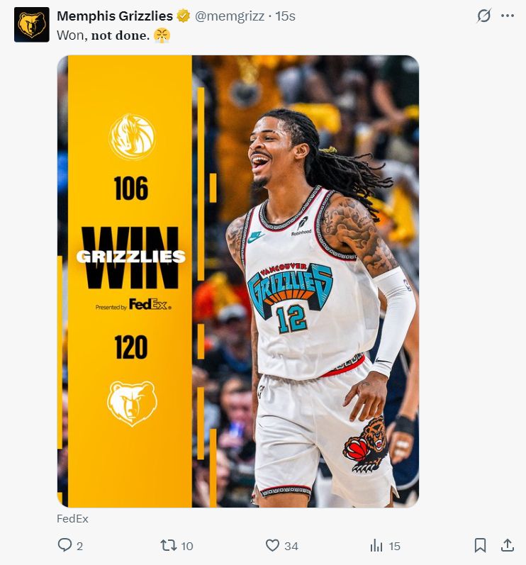 独行侠记者:“在77号被交易77天后,独行侠在附加赛被淘汰了。以106比120输给孟菲斯灰熊队。”