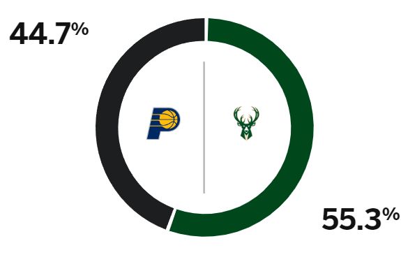 ESPN预测胜率:步行者44.7%,雄鹿55.3%