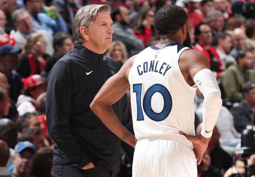 森林狼方面:兰德尔、戈贝尔、康利、爱德华兹、麦克丹尼尔斯