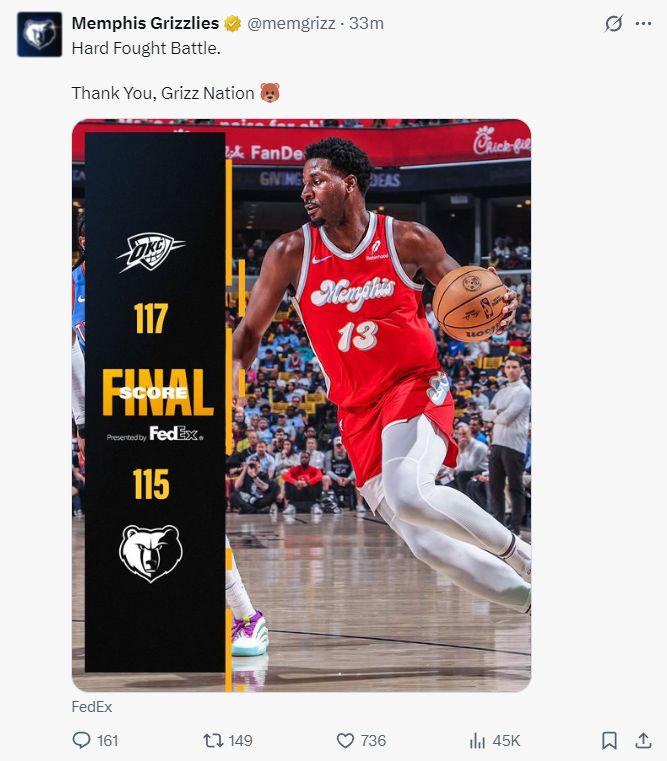 北京时间4月27日,灰熊115-117惜败雷霆,灰熊大比分0-4出局,孟菲斯成为本赛季最先出局的球队。我们都知道灰熊的早早出局跟多尔特弄伤莫兰特有关,这场G4如果有莫兰特结局必然不同,因为两队又打到决胜时刻。