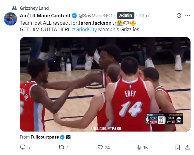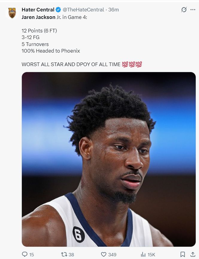 美记写道:小贾伦已经失去了灰熊队的所有尊重,把他赶出球队吧。