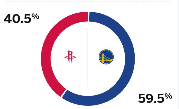 ESPN预测胜率:火箭40.5%,勇士59.5%