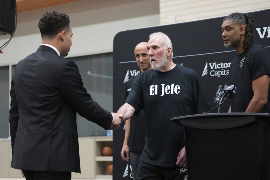 “我不再是教练了,”波波维奇调侃道,“我现在是‘老大’。”现场一片笑声和掌声。波波维奇还特意提醒在场众人:“他会干得非常出色。”