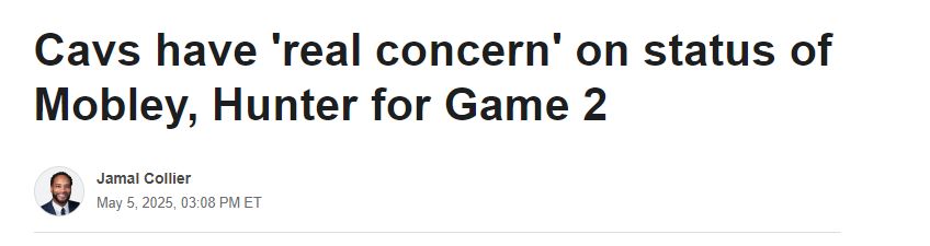 加兰、莫布利和亨特出战G2的比赛成疑。骑士主教练阿特金森表示,对于后两位球员能否上场确实“十分担忧”,并且在训练后谈到他们的情况时,还用了“不太可能上场”这样的表述。