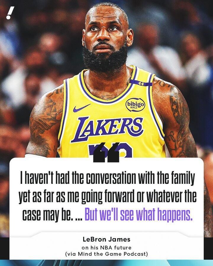 詹姆斯今年夏天既可能成为自由球员,也有可能选择退役。在过去几个休赛期里,这位球星已多次深入探讨过这一话题,而如今,他职业生涯的终点似乎正愈发临近。詹姆斯拥有价值5260万美元的球员选项,联盟中许多人都预计他会再征战一个赛季。没到最后一刻,谁也不能担保詹姆斯下赛季会重回赛场。如果他决定继续征战NBA,这将是他在NBA的第23个赛季,也意味着他有望开启一次告别巡演。