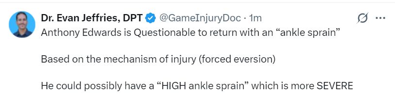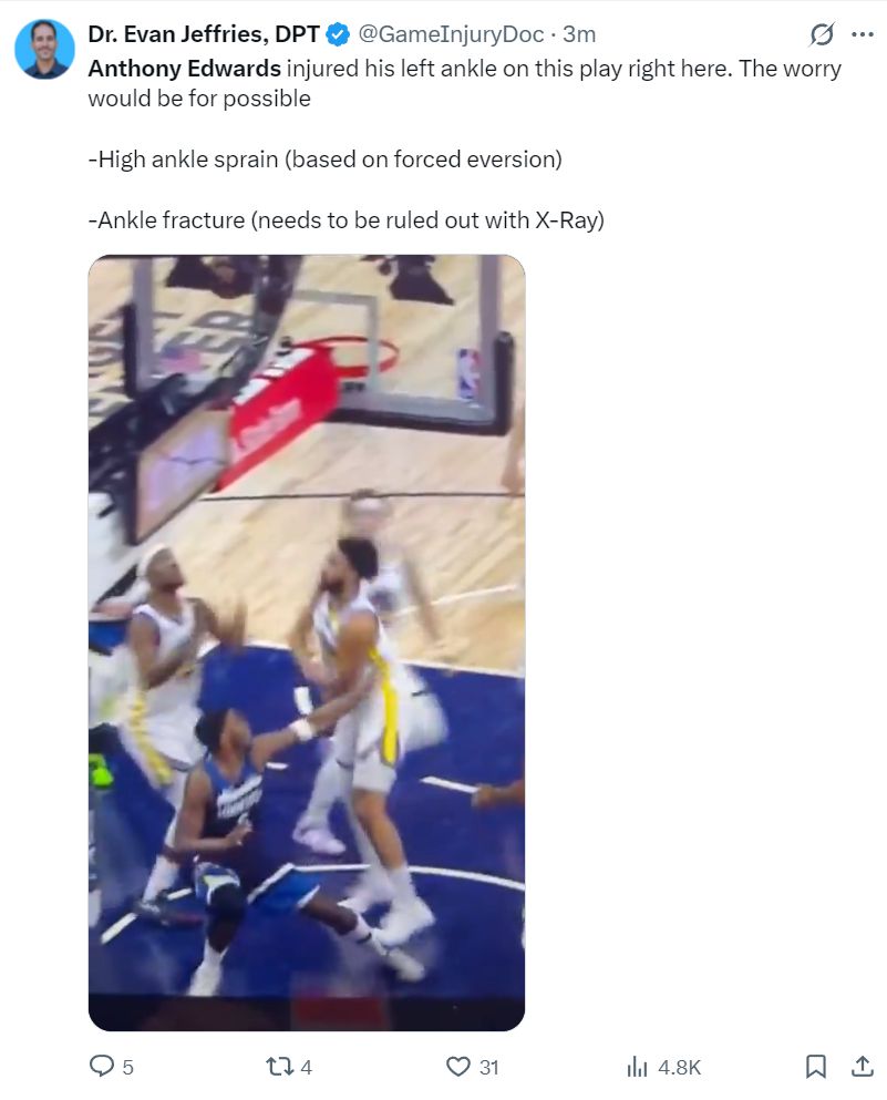 医学专家埃文-杰弗里斯分析华子伤情:华子在G2中伤了左脚踝,担心可能的伤病情况: