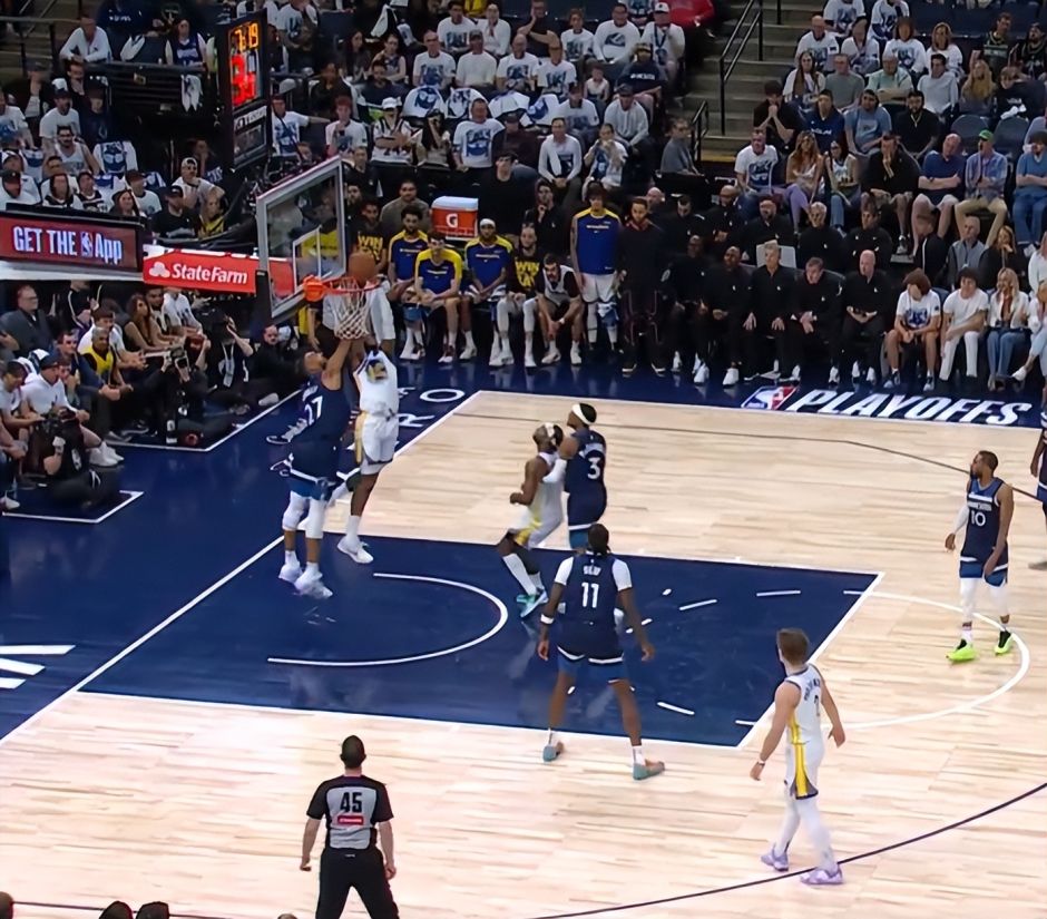 勇士记者:库明加在赛季多次遭遇挫折,但他在这场G2上半场非常出色,快攻暴扣,转换上篮,突破暴扣,5中5拿到10分。