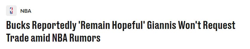 勇士若想完成交易,必须倾其所有,但并非完全不可能。Stein进一步指出:“联盟中关于字母哥可能进入交易市场的预期持续升温,许多人认为,这位30岁球星最终意识到无法在密尔沃基围绕他打造争冠阵容只是时间问题。”