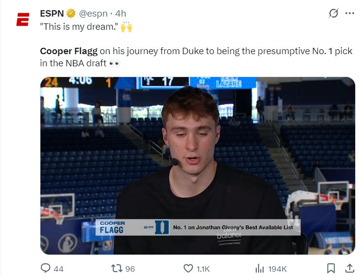 ESPN、The Athletic等权威媒体连续多月将他列为2025届选秀状元头号热门,这一地位的稳固从杜克大学队友卡曼-马鲁阿奇(中锋)仅位列第8便可见一斑,凸显出他在同届新秀中的绝对领先地位。球探报告对上限的定位极为大胆,将他对标为伯德或詹姆斯,这两位传奇球星都以全面的进攻组织与防守覆盖能力著称。下限则定位为基里连科或塔图姆这类全能锋线。部分专家甚至提出了“防守加强版伦纳德+投射弱化版塔图姆”的混合定位。
