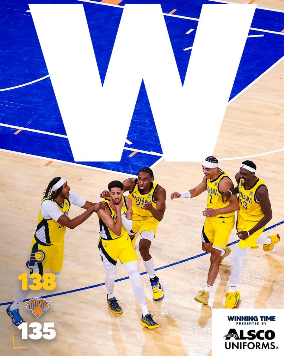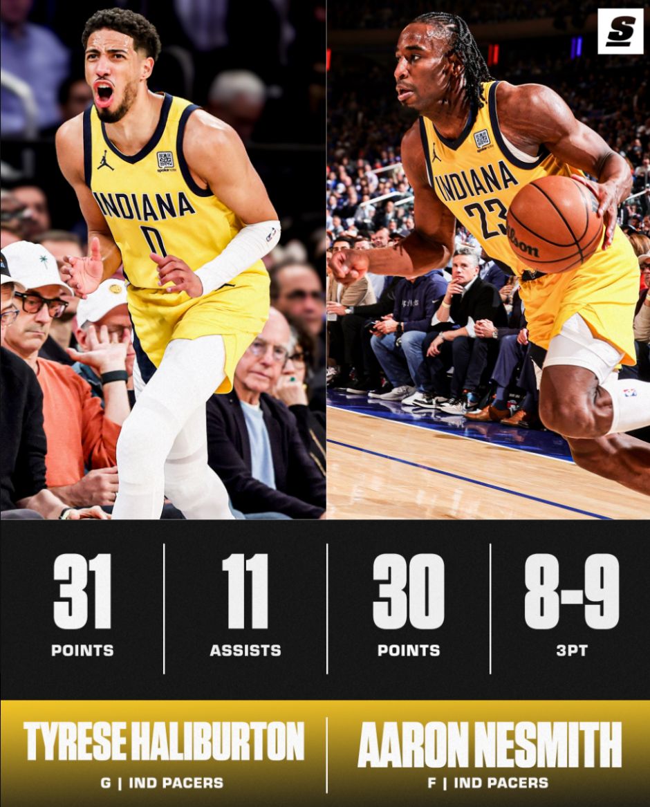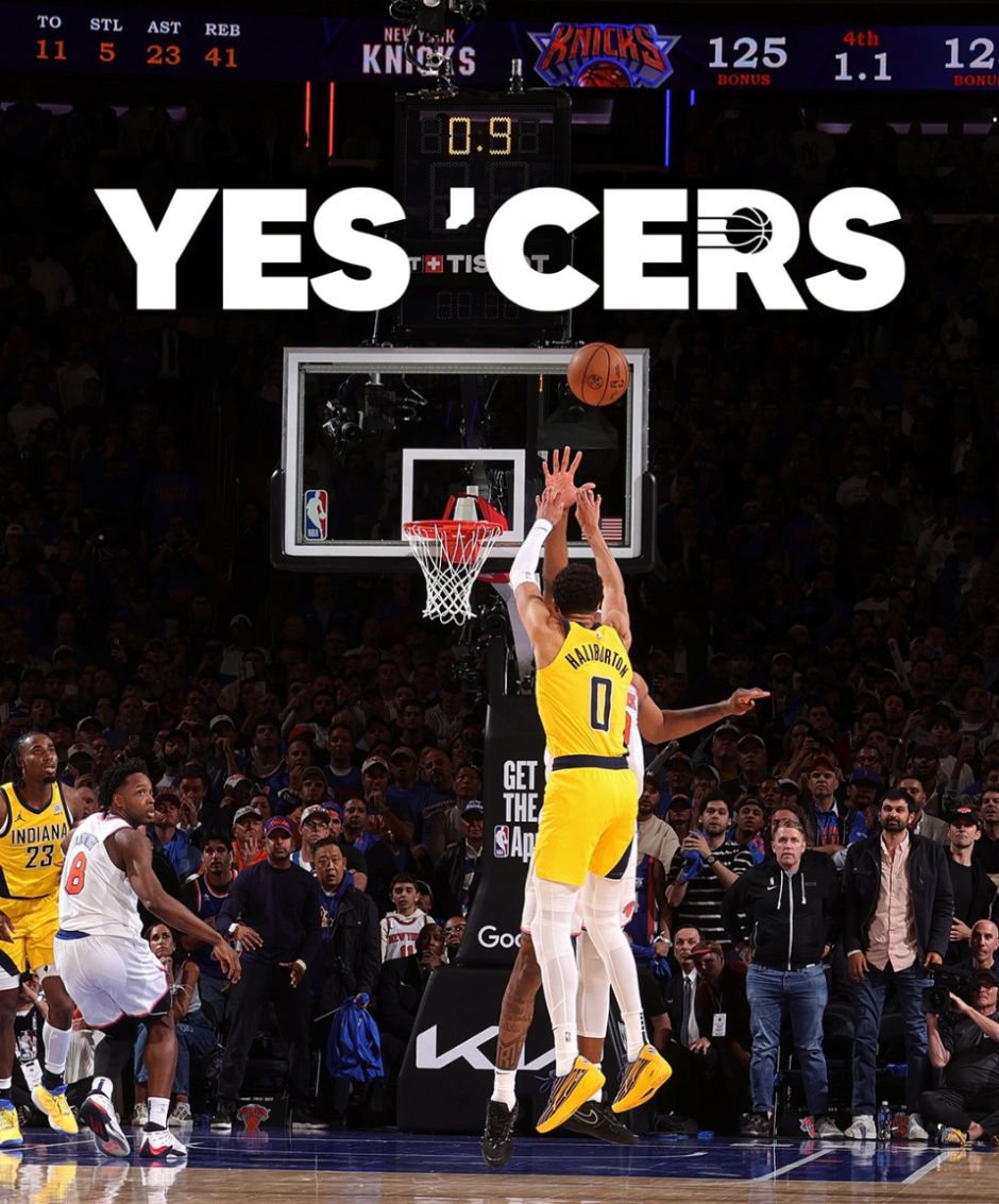 哈利伯顿比肩了步行者名宿雷吉-米勒,他帮助球队完成了这盖世一战。值得一提的是上赛季东部半决赛,步行者是大比分0-2落后尼克斯,最终完成4-3逆转进入东决。