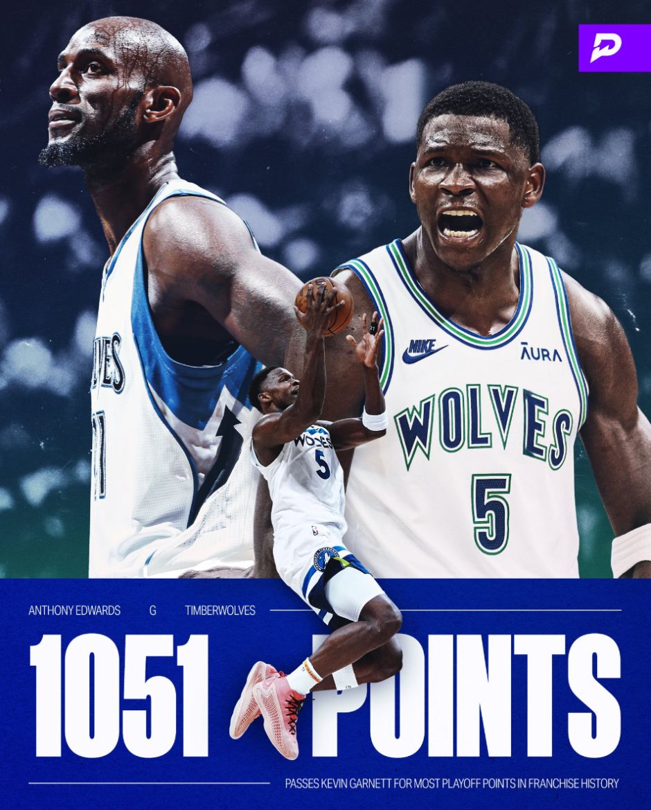 赛前NBA官方就在预热爱德华兹即将超过加内特季后赛总得分1049分,结果华子只用了三节就来到1051分,唐斯603分第三,麦丹412分第四。不得不说森林狼队史成色过于薄弱这才让华子很快成为木狼季后赛得分榜第一人。