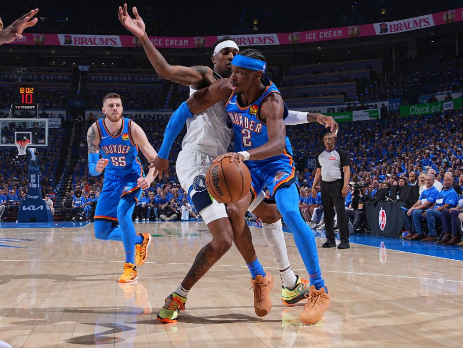 末节亚历山大常规轮休休息了3分多钟才回来,SGA突破麦丹直接被麦丹泄愤的推搡出去裁判回看,麦丹吃了一级恶意,随后SGA突破欧洲步命中,撤步中投,他一直帮助雷霆稳稳压制森林狼,最终锁定胜局。