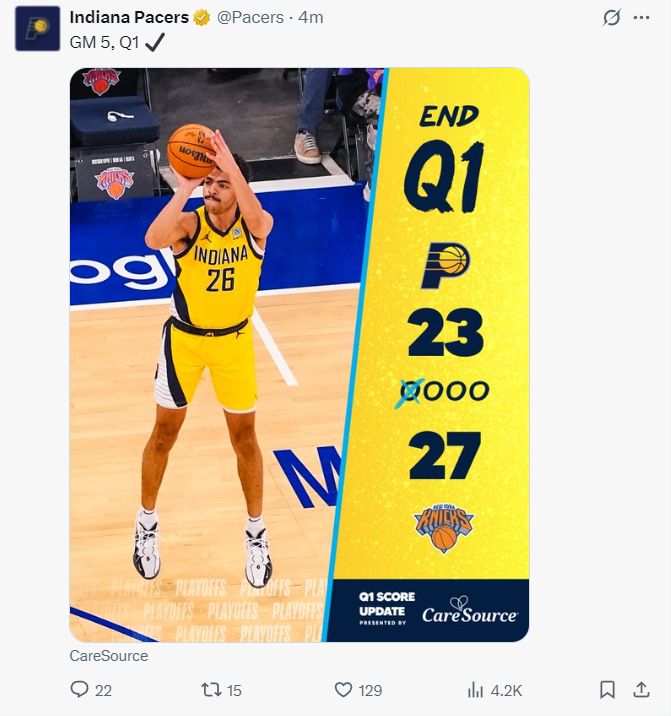 麦克布莱德关键三分,唐斯突破打板不中,西卡三分不中,唐斯抢篮板出界进入官方暂停。唐斯篮下再度命中2+1已经拉开到12分,特纳吃下第三次犯规,哈利伯顿造犯规,西卡又造犯规,唐斯篮下强吃托平又防下西卡的抛投,半场打完尼克斯领先11分。