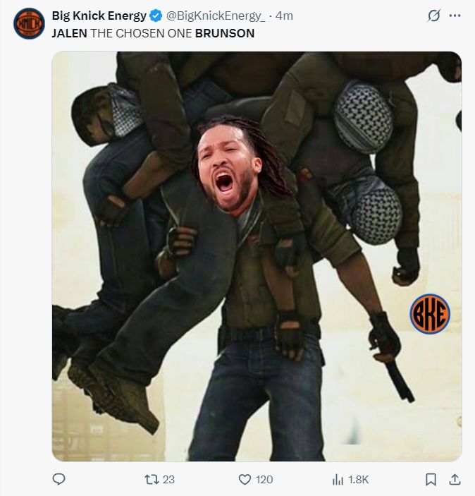末节开场布伦森还在休息,尼克斯被缩小到12分,布伦森被换上,布伦森急停命中,随后卡莱尔放弃比赛,布伦森也被换下,布伦森全场比赛33分钟,18中12+三分7中4拿到32分5篮板5助攻。