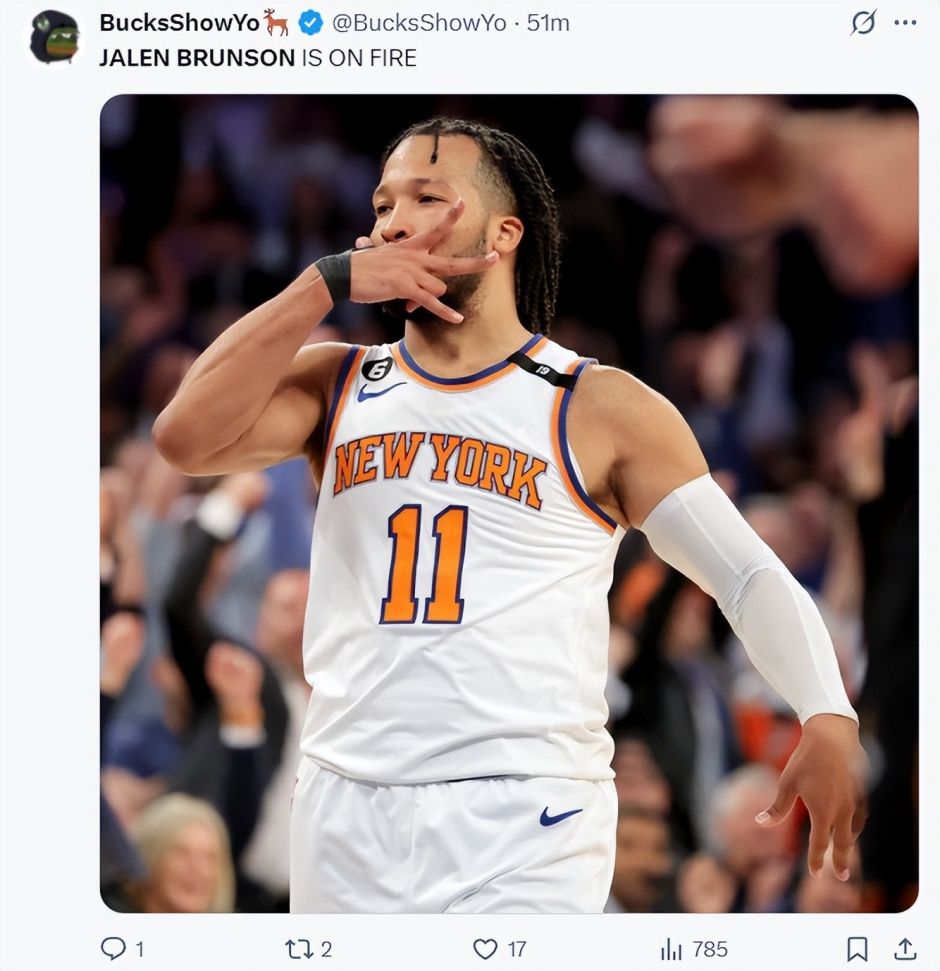 这场比赛后,尼克斯拖入抢七的词条登上全美第二热搜,因为尼克斯球迷们觉得还有逆袭的可能。