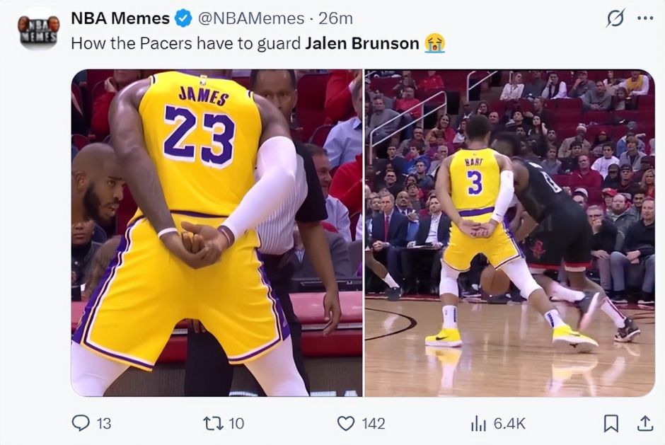 美媒嘲讽步行者防守布伦森都已经是当年湖人防守哈登的策略,都只能背着手不然就要被布伦森造犯规,实际上布伦森首节7分2助攻没有罚球。