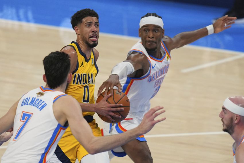 亚历山大总决赛首秀砍30+。在最后时刻,亚历山大连续不中导致哈利伯顿绝杀。他出战40分钟,投篮30中14,三分6中3,罚球8中7,砍下38分5篮板3助攻3抢断,正负值+3!