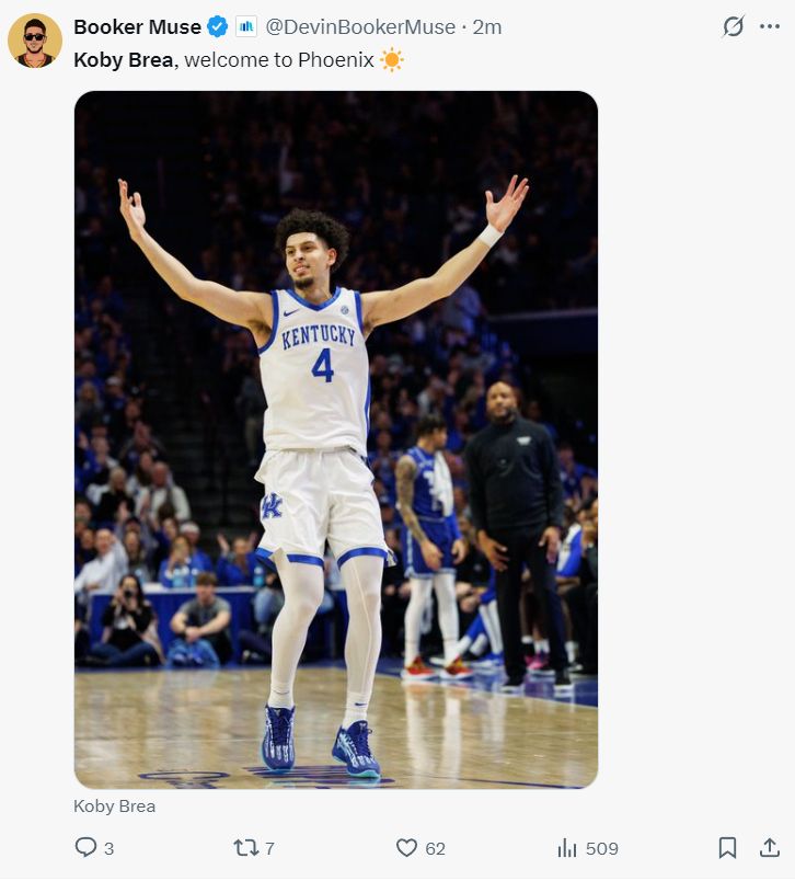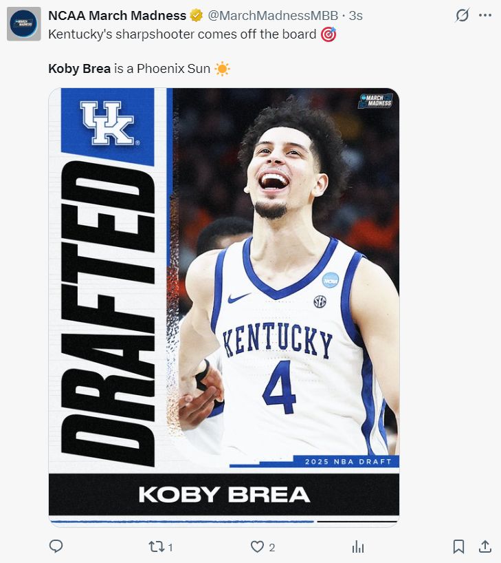 北京时间6月27日,NBA次轮选秀日,菲尼克斯太阳队在41顺位选中了来自肯塔基大学的投手科比-布雷亚,他也可以被称之为“白科比”,他与科比之间也有某种联系,他的裸足也是1.98米,穿鞋身高都是2.01米。