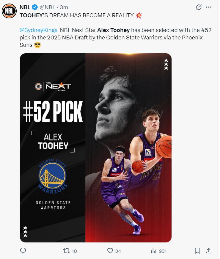 勇士52顺位选中来自NBL的亚历克斯-图希;爵士53顺位选中约翰-通杰;步行者54顺位选中卡伦-皮特;公牛55顺位选中了拉克西-奥尔布里奇;勇士56顺位威尔-理查德;魔术57顺位马克斯-舒尔加;骑士58顺位萨利乌-尼昂;灰熊59顺位贾麦-梅沙克。