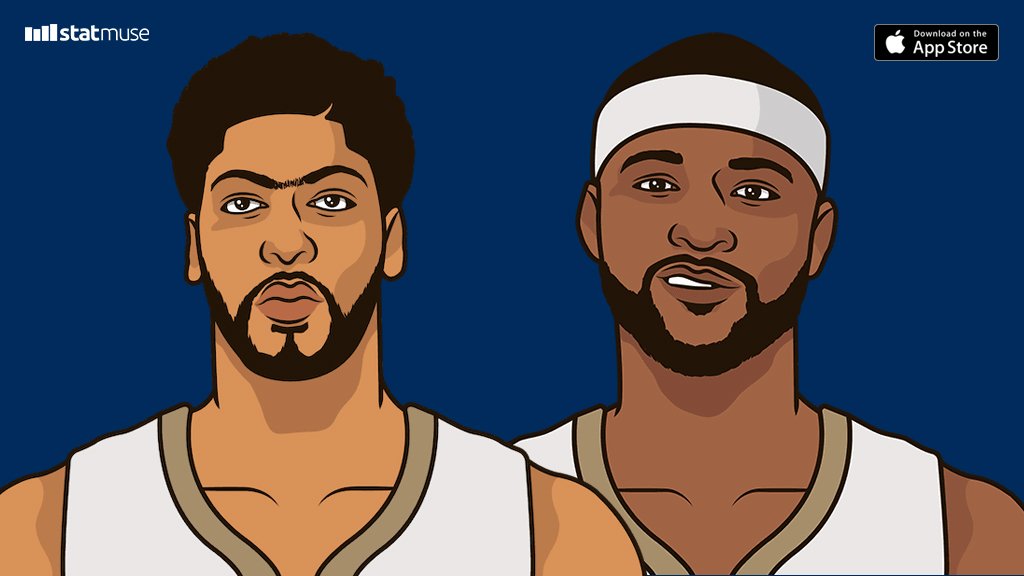 本场比赛,戴维斯出场32分钟,19投11中,其中三分球4投4中得到了33分11个篮板2次助攻1次抢断和6次盖帽;考辛斯出场了32分钟,19投10中得到了27分14个篮板5次助攻1次抢断和1次盖帽。